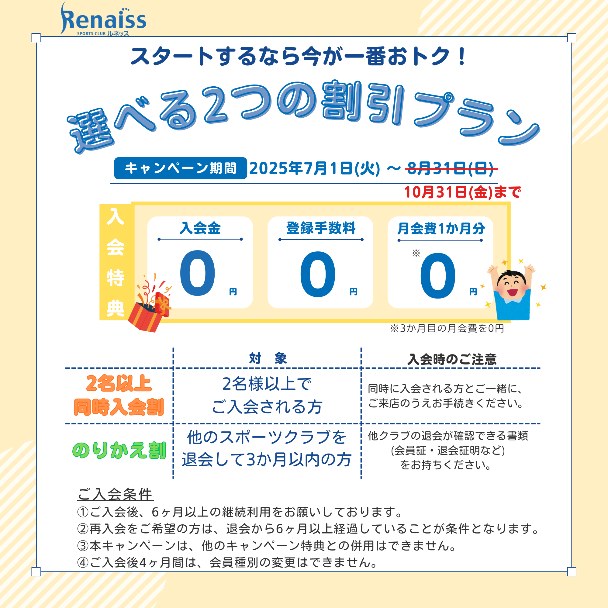 ルネッスでは、期間限定でお得な【入会キャンペーン】を実施中です。